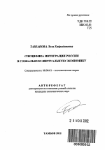 Специфика интеграции России в глобальную виртуальную экономику тема диссертации по экономике, полный текст автореферата