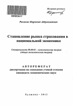 Становление рынка страхования в национальной экономике тема диссертации по экономике, полный текст автореферата