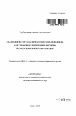 Становление системы финансового планирования в автономных учреждениях высшего профессионального образования тема диссертации по экономике, полный текст автореферата