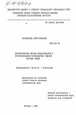 Статистические методы моделирования и прогнозирования производства товаров бытовой химии тема диссертации по экономике, полный текст автореферата