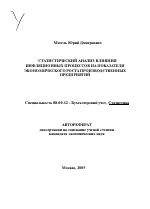 Статистический анализ влияния инфляционных процессов на показатели экономического роста производственных предприятий тема диссертации по экономике, полный текст автореферата