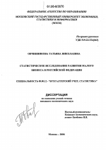 Статистическое исследование развития малого бизнеса в Российской Федерации тема диссертации по экономике, полный текст автореферата