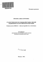 Статистическое исследование рынка жилой недвижимости Российской Федерации тема диссертации по экономике, полный текст автореферата