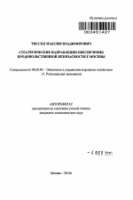 Стратегические направления обеспечения продовольственной безопасности г. Москвы тема диссертации по экономике, полный текст автореферата