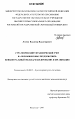 Стратегический управленческий учет на промышленных предприятиях: концептуальный подход, моделирование и организация тема диссертации по экономике, полный текст автореферата