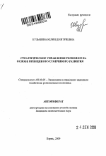 Стратегическое управление регионом на основе принципов устойчивого развития тема диссертации по экономике, полный текст автореферата