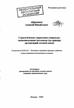 Стратегическое управление социально-экономическими системами тема диссертации по экономике, полный текст автореферата