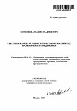 Стратегии научно-технического развития российских промышленных предприятий тема диссертации по экономике, полный текст автореферата