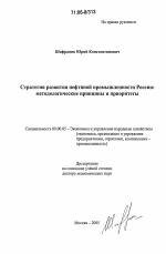 Стратегия развития нефтяной промышленности России: методологические принципы и приоритеты тема диссертации по экономике, полный текст автореферата