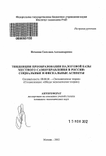 Тенденции преобразования налоговой базы местного самоуправления в России: социальные и фискальные аспекты тема диссертации по экономике, полный текст автореферата