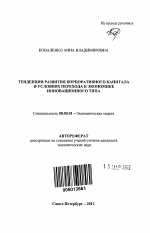 Тенденции развития корпоративного капитала в условиях перехода к экономике инновационного типа тема диссертации по экономике, полный текст автореферата