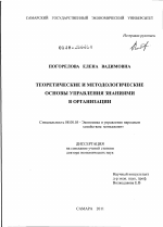 Теоретические и методологические основы управления знаниями в организации тема диссертации по экономике, полный текст автореферата