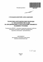 Автореферат диссертации по теме "Теоретико-методические подходы к управлению рисками на предприятиях сельскохозяйственного машиностроения"