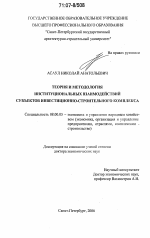 Теория и методология институциональных взаимодействий субъектов инвестиционно-строительного комплекса тема диссертации по экономике, полный текст автореферата