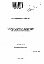 Теория и методология исследования качества жизни населения города в маркетинге территории тема диссертации по экономике, полный текст автореферата