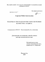 Теория и методология обеспечения качества аудита тема диссертации по экономике, полный текст автореферата