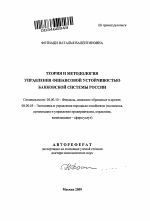 Теория и методология управления финансовой устойчивостью банковской системы России тема диссертации по экономике, полный текст автореферата