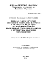 Автореферат диссертации по теме "Торгово-экономические отношения Республики Казахстан с Российской Федерацией и Китайской Народной Республикой: состояние, проблемы и перспективы взаимного сотрудничества"