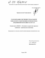 Трансформация собственности как фактор финансового оздоровления промышленных предприятий Республики Татарстан тема диссертации по экономике, полный текст автореферата
