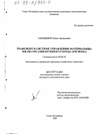 Транспорт в системе управления материальными ресурсами крупного города тема диссертации по экономике, полный текст автореферата
