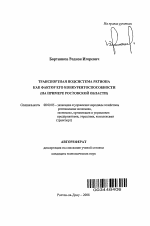 Транспортная подсистема региона как фактор его конкурентоспособности тема диссертации по экономике, полный текст автореферата