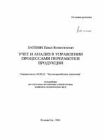 Автореферат диссертации по теме "Учет и анализ в управлении процессами переработки продукции"