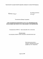 Учет и контроль потоков затрат на производство продукции мясоперерабатывающего предприятия тема диссертации по экономике, полный текст автореферата