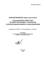 Управленческий учет хозяйствующих субъектов агропромышленного объединения тема диссертации по экономике, полный текст автореферата