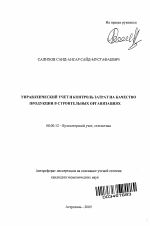 Управленческий учет и контроль затрат на качество продукции в строительных организациях тема диссертации по экономике, полный текст автореферата