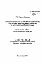 Управленческий учет затрат и калькулирование себестоимости продукции хлебопечения в потребительской кооперации тема диссертации по экономике, полный текст автореферата