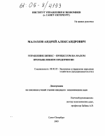 Управление бизнес-процессом на малом промышленном предприятии тема диссертации по экономике, полный текст автореферата