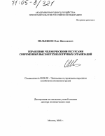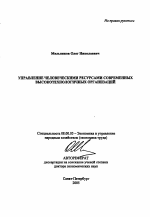 Управление человеческими ресурсами современных высокотехнологичных организаций тема диссертации по экономике, полный текст автореферата