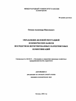 Автореферат диссертации по теме "Управление деловой репутацией коммерческих банков посредством интегрированных маркетинговых коммуникаций"