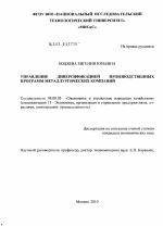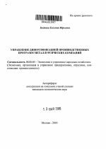 Управление диверсификацией производственных программ металургических компаний тема диссертации по экономике, полный текст автореферата