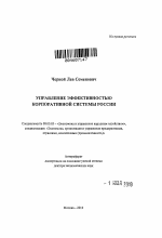 Управление эффективностью корпоративной системы России тема диссертации по экономике, полный текст автореферата