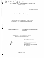 Управление эффективным развитием машиностроительного предприятия тема диссертации по экономике, полный текст автореферата
