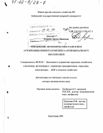 Управление экономическим развитием агропромышленного комплекса муниципального образования тема диссертации по экономике, полный текст автореферата