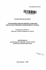 Автореферат диссертации по теме "Управление финансовыми активами негосударственного пенсионного фонда"
