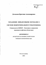 Автореферат диссертации по теме "Управление финансовыми потоками в системе межрегионального товарообмена"
