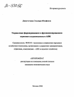 УПРАВЛЕНИЕ ФОРМИРОВАНИЕМ И ФУНКЦИОНИРОВАНИЕМ ЗЕРНОВОГО ПОДКОМПЛЕКСА В АПК тема диссертации по экономике, полный текст автореферата