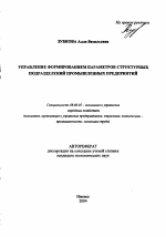 Управление формированием параметров структурных подразделений промышленных предприятий тема диссертации по экономике, полный текст автореферата