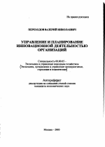 Управление и планирование инновационной деятельностью организаций тема диссертации по экономике, полный текст автореферата