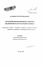 Управление инновационным развитием предприятий малого и среднего бизнеса тема диссертации по экономике, полный текст автореферата