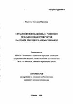 Управление инновационным развитием промышленных предприятий на основе проектного финансирования тема диссертации по экономике, полный текст автореферата