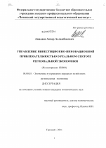 УПРАВЛЕНИЕ ИНВЕСТИЦИОННО-ИННОВАЦИОННОМ ПРИВЛЕКАТЕЛЬНОСТЬЮ В РЕАЛЬНОМ СЕКТОРЕ РЕГИОНАЛЬНОЙ ЭКОНОМИКИ