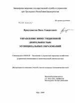 Управление инвестиционной деятельностью муниципальных образований тема диссертации по экономике, полный текст автореферата