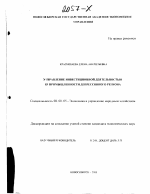 Управление инвестиционной деятельностью в промышленности депрессивного региона тема диссертации по экономике, полный текст автореферата