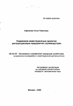 Управление инвестиционным проектом реструктуризации предприятия стройиндустрии тема диссертации по экономике, полный текст автореферата