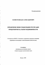 Управление инвестиционными ресурсами предприятия на рынке недвижимости тема диссертации по экономике, полный текст автореферата