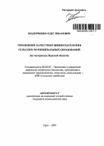 Автореферат диссертации по теме "Управление качеством жизни населения сельских муниципальных образований"